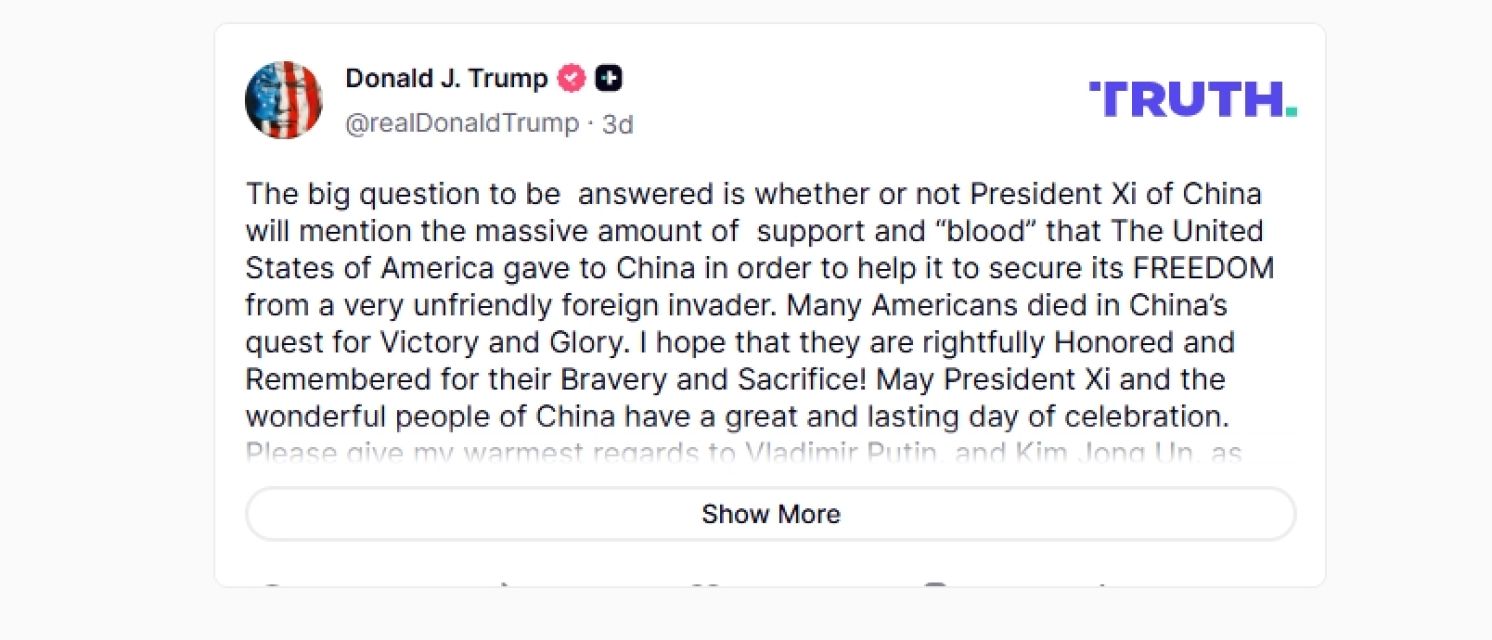 Trump Claims Credit for Allied Victory in WWII, President Lai Behaves as if Representing Defeated Nation