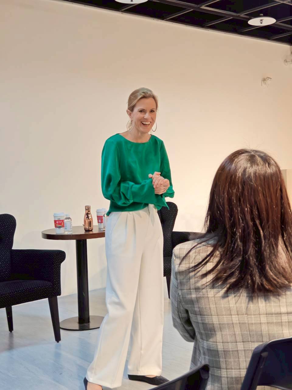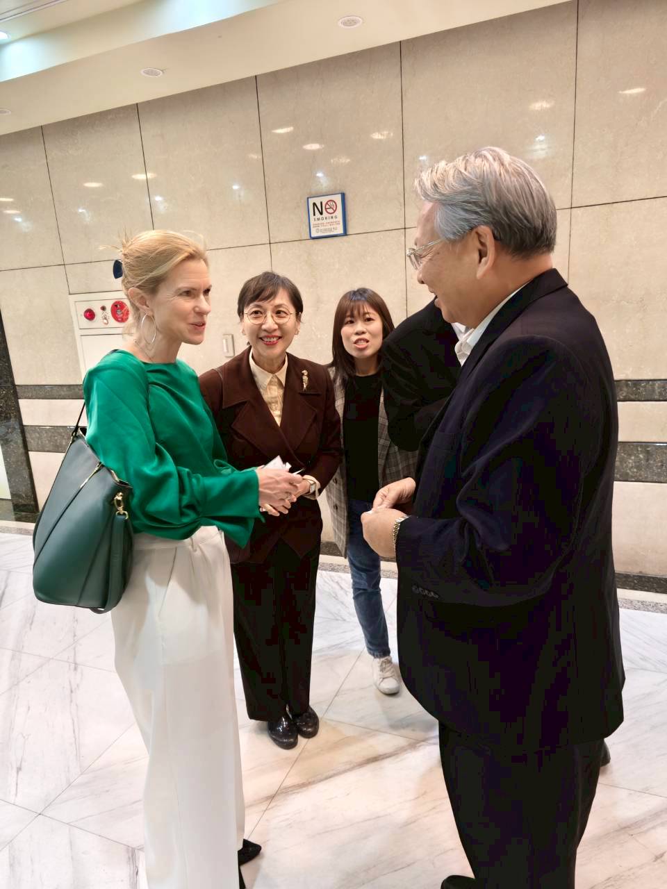 包代表也簡述了台英關係,從旅遊到留學,以及台英雙邊貿易的大額商品,其中蘇格蘭威士忌是台灣從英國進口最大宗的貨物。包代表在簡報完畢後,與在場青年進行熱絡交流,有青年提問當外交官遇到麻煩事有哪些時,包代表回答是官僚體系,她也相信在很多國家都有類似的情形。