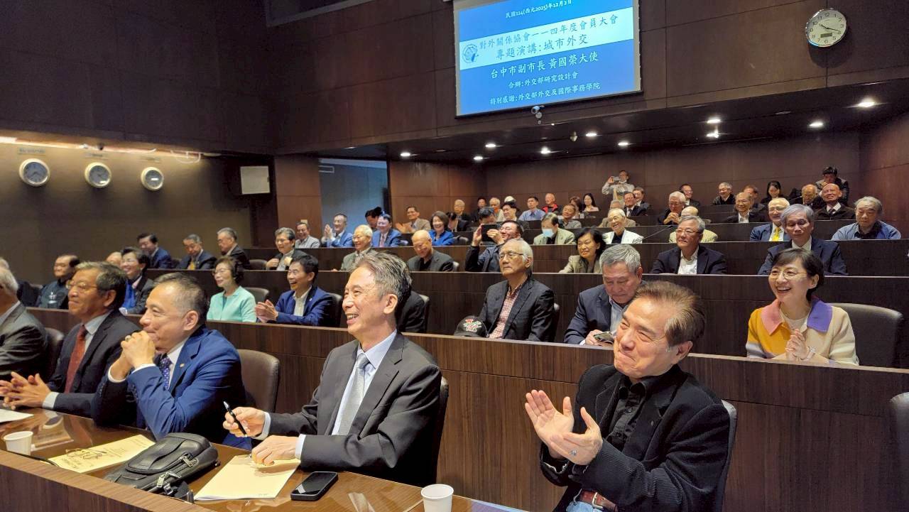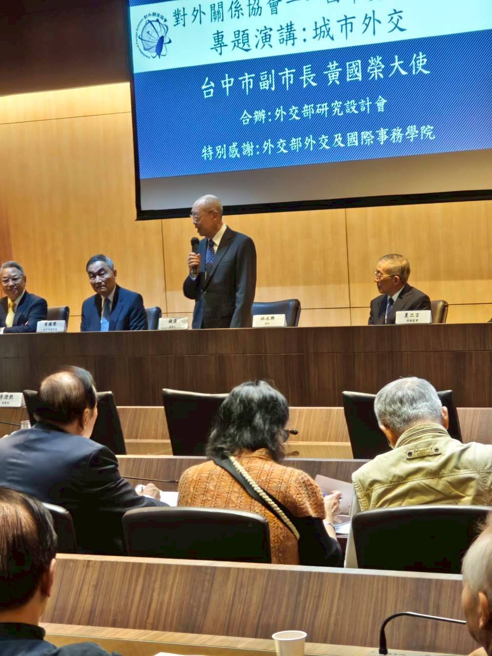 協會另邀請台中市副市長黃國榮大使進行「城市外交」的專題演講,吸引會眾高度關注。黃副市長曾派駐蒙古國等地,涉外經驗豐富,他還特別提到對外關係協會與台中市政府合作的「大使帶你遊世界」演講活動,目前已經超過兩萬學子受惠。