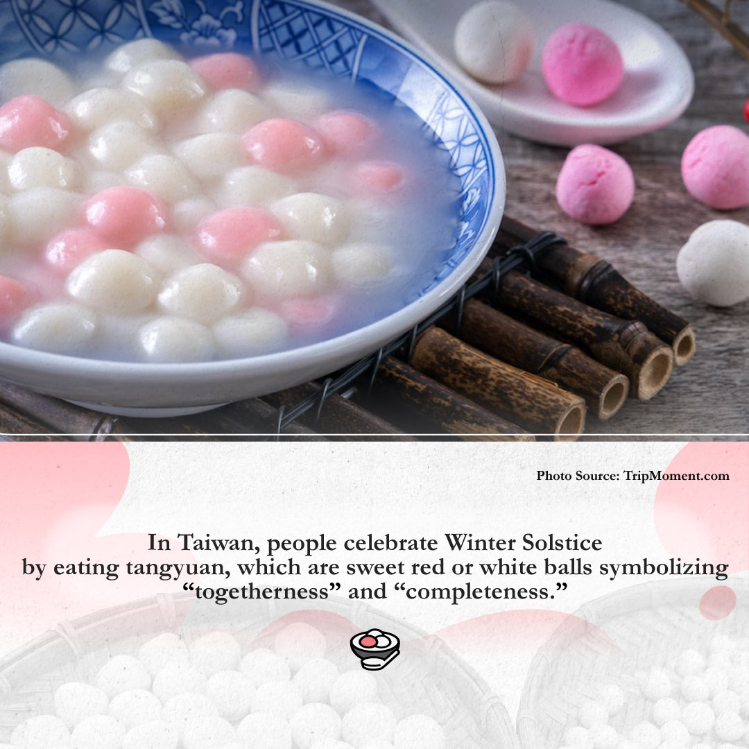 This popular glutinous rice ball treat, rooted in the ancient cuisine of East Asia, is a common choice for celebration during the winter solstice in Taiwan. Typically, people enjoy the sweet variety filled with red bean or sesame, offering a comforting warmth as the winter breeze sets in.