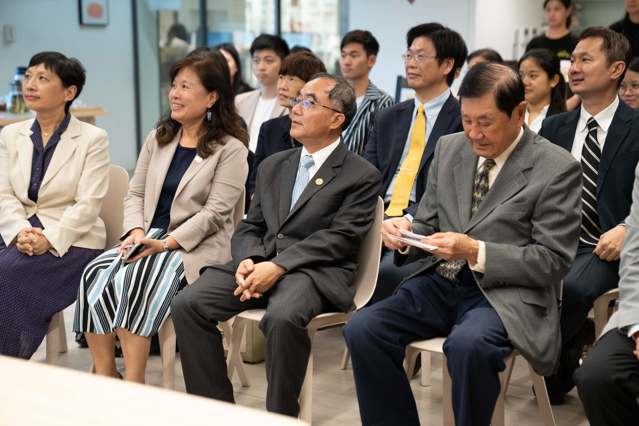 陳文章校長親自出席捐贈感恩茶會外,也邀請 遠景基金會 陳唐山董事長(前外交部長)、對外關係協會【Association of Foreign Relations】林永樂會長(前外交部長)、沈冬教授(前國際長)及 語言訓練測驗中心 - LTTC 李欣穎教授與會見證🙌🏻,並由袁孝維國際長與廖珮真財務長與高安參事簽署捐贈合約📝,致贈感謝獎牌,本次茶會也特地請今年暑假至美國 IBM 與英國皇家植物園實習的學生分享心得💁🏻♀️