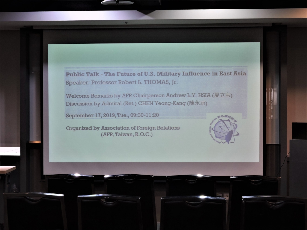 Robert L. Thomas, Jr. 教授演講「美國在東亞軍事影響力的未來」,108年9月17日,台北市