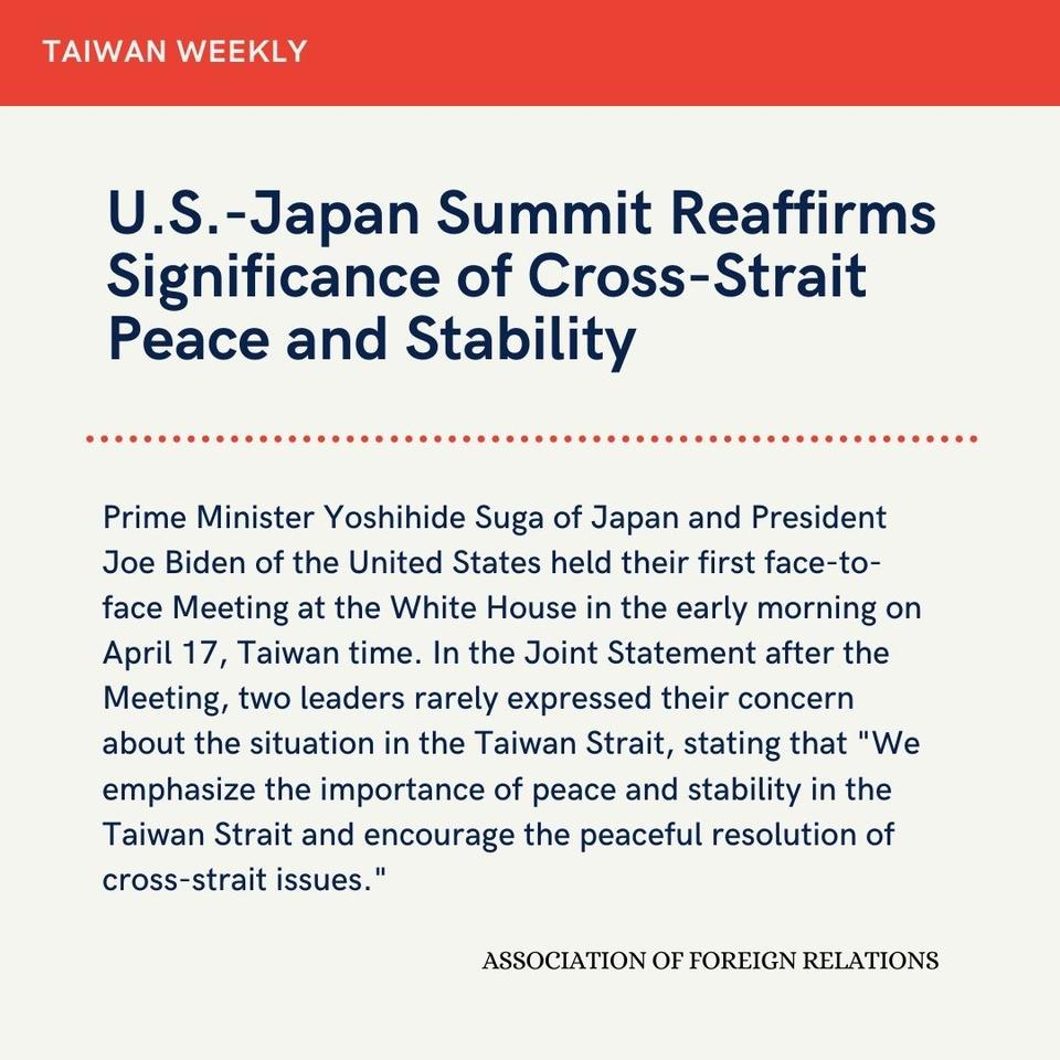 ▍U.S.-Japan Summit Reaffirms Significance of Cross-Strait Peace and Stability