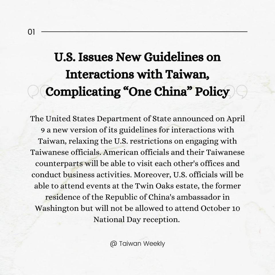 ▍U.S. Issues New Guidelines on Interactions with Taiwan, Complicating “One China” Policy
