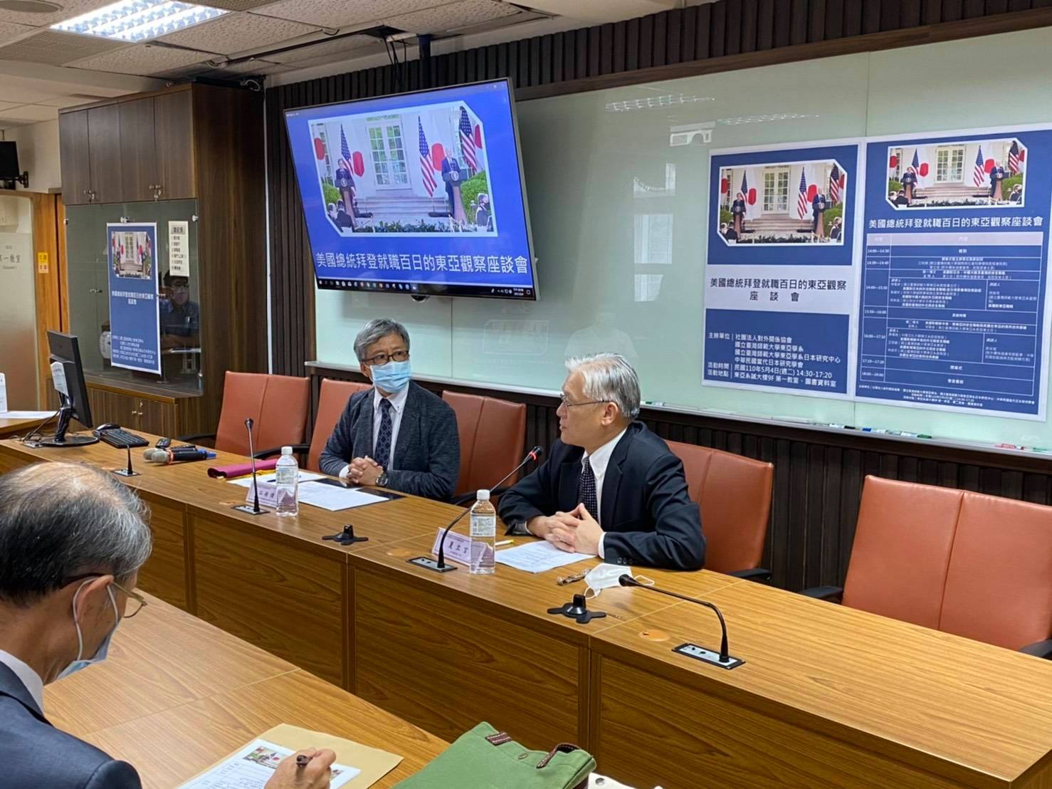 The Association of Foreign Relations held a New America on May 4th (110) President Biden's 100-day East Asia Observation Symposium, with President Xia Liyan as the moderator, and invited Prof. Lin Jusheng, Prof. Sun Guoxiang, Prof. Chonghan, Prof. Chen, Prof. Wang Guoxiang, Prof. Lin Changping, Prof. Xu Wei, and Ambassador Liang Yingbin to serve as the speakers and speakers of this panel.