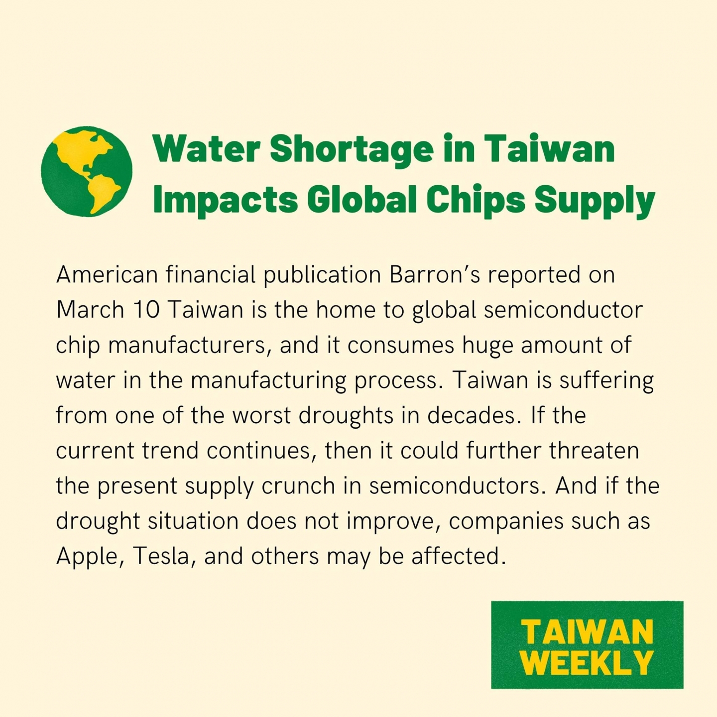▍Water Shortage in Taiwan Impacts Global Chips Supply