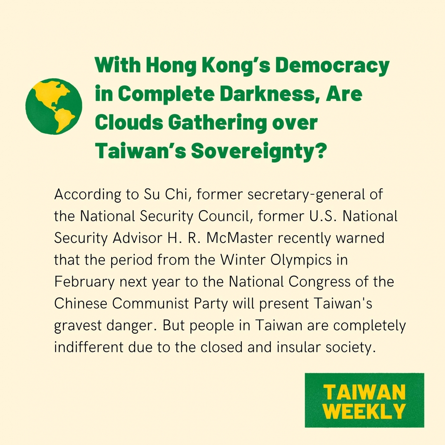 ▍With Hong Kong’s Democracy in Complete Darkness, Are Clouds Gathering over Taiwan’s Sovereignty?