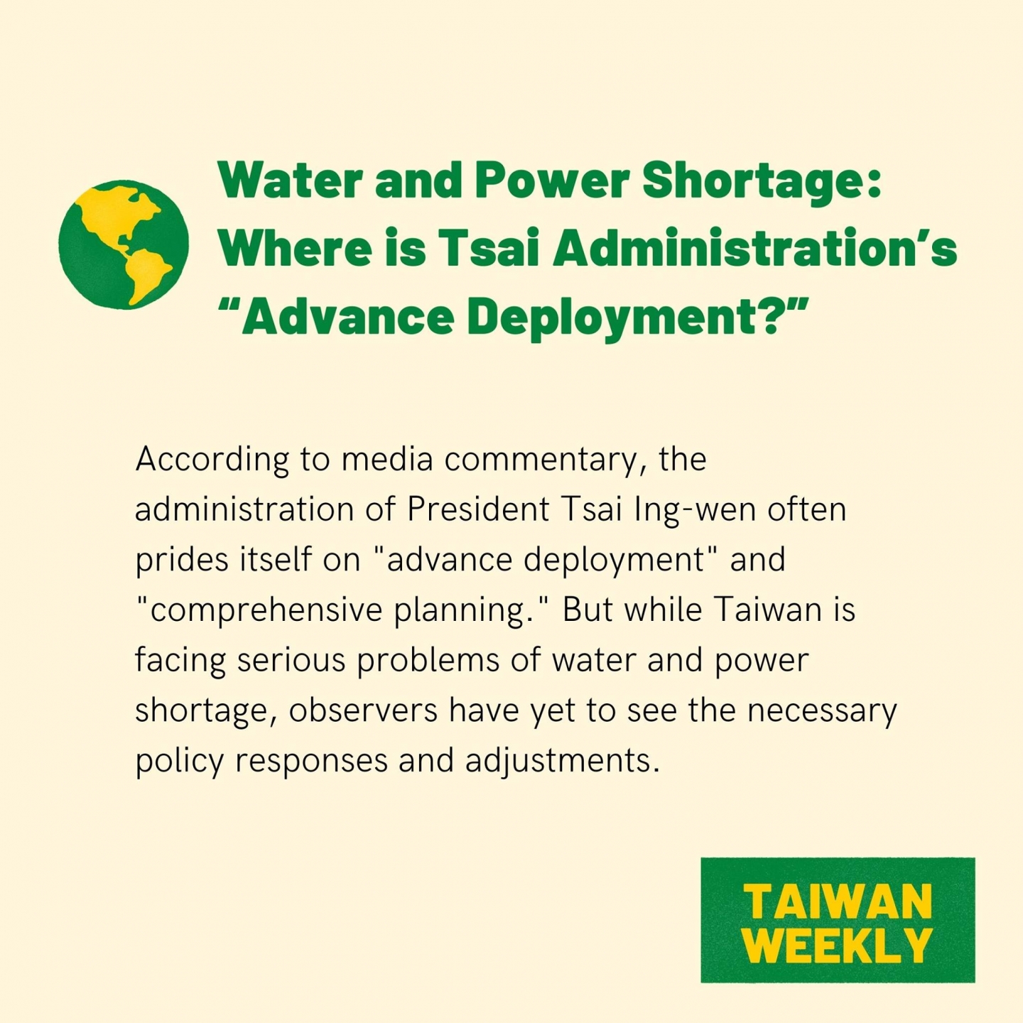 ▍Water and Power Shortage: Where is Tsai Administration’s “Advance Deployment?”