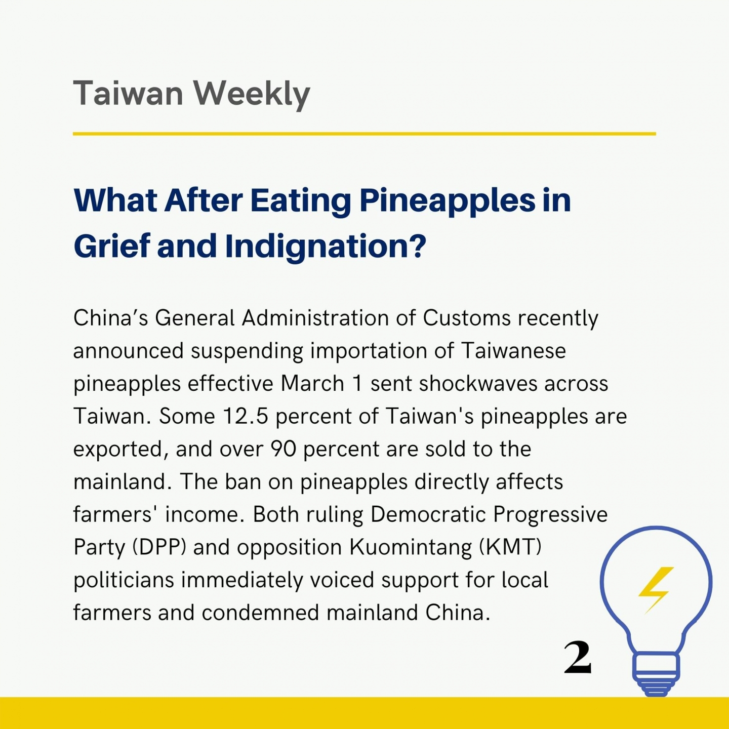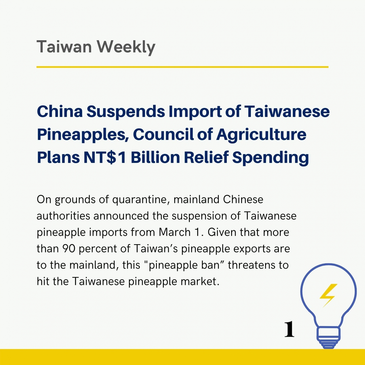 ▍China Suspends Import of Taiwanese Pineapples, Council of Agriculture Plans NT$1 Billion Relief Spending