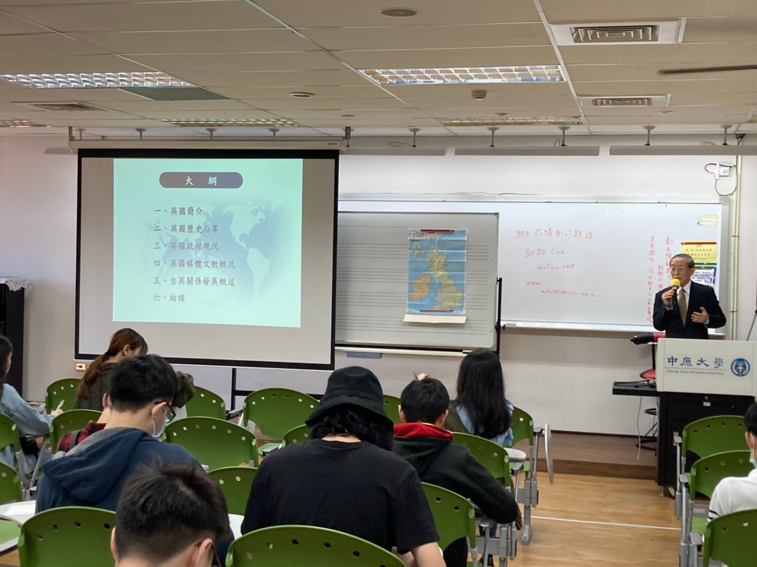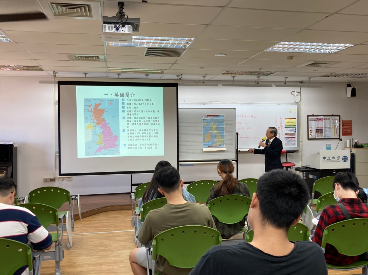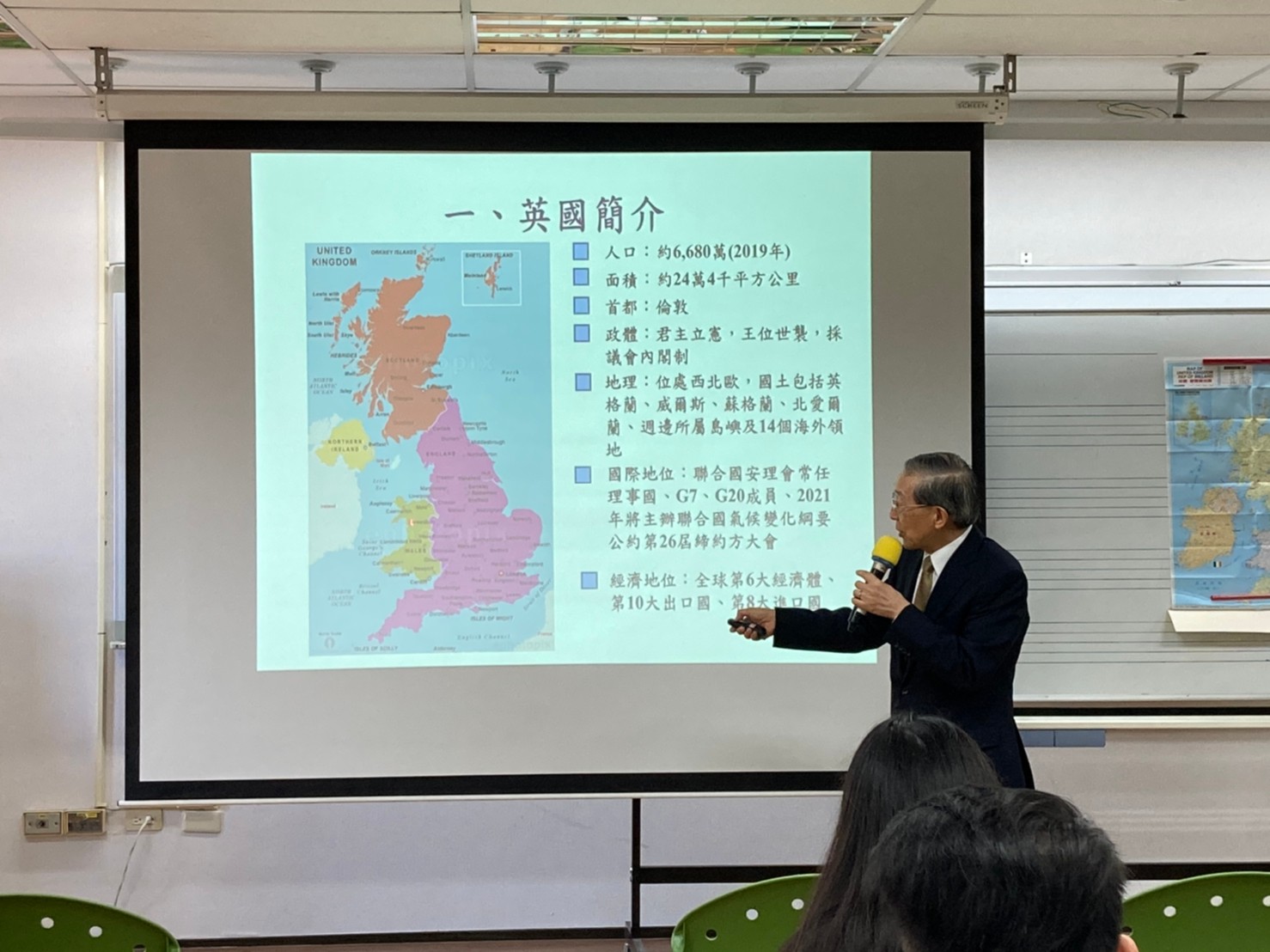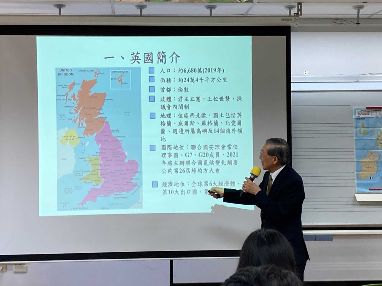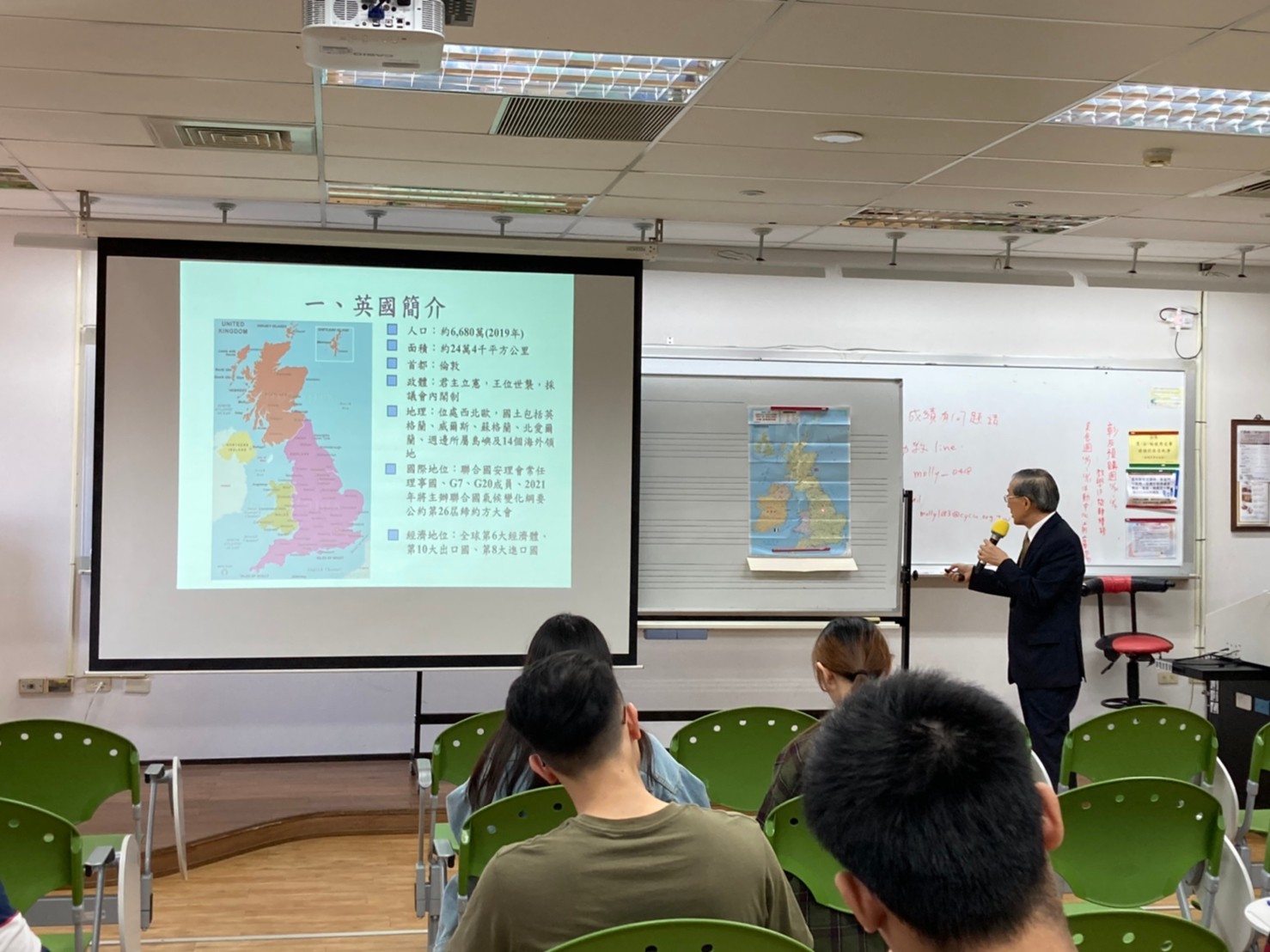 🎉 本次邀請對外關係協會 #林永樂部長 與同學們分享 #英國,介紹英國的政治體制、歷史沿革、政經現況,以及我國與英國的關係等,讓同學對於英國有深入的了解。