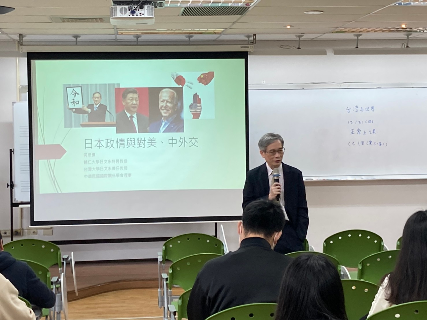 🎉 本次邀請對外關係協會 #何思慎教授 與同學們分享 #日本政情與對美中外交。美中對峙之下,身為日本專家的何思慎老師於課堂上分析日本對兩國分別實施的外交政策,以及日本目前政情的變化。