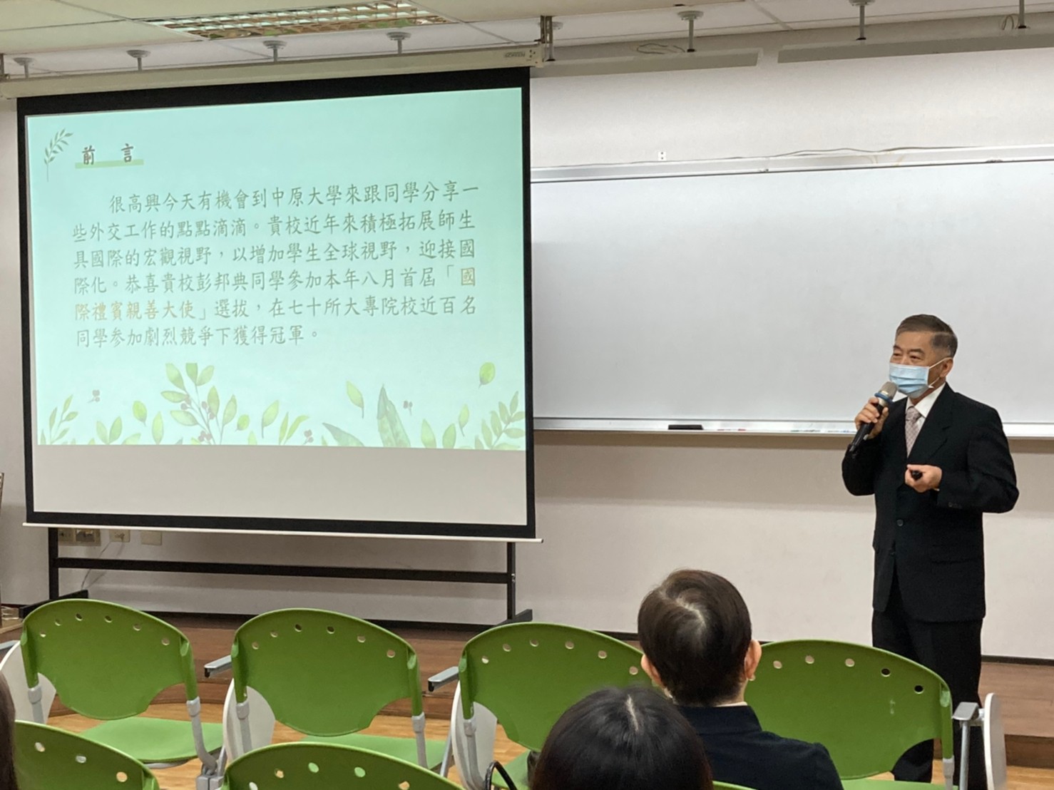 ▍對外關係協會與各大專校院合作開設通識課程,邀請協會各領域大使、專家每週輪流至學校分享授課,拓展學生國際視野。