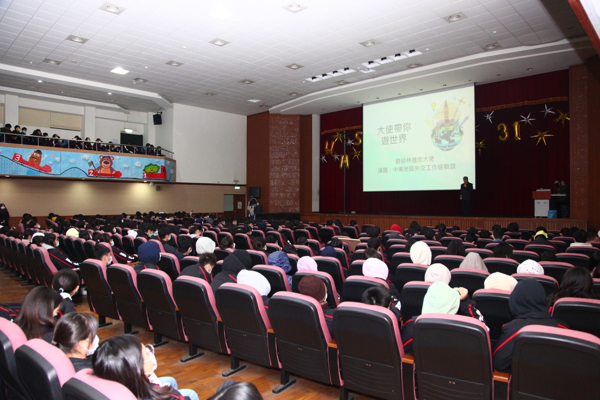 第25站 #文華高中 由 #林進忠大使 分享中東地區駐外經驗,讓同學了解中東神秘國度,以及外交人員的生涯。