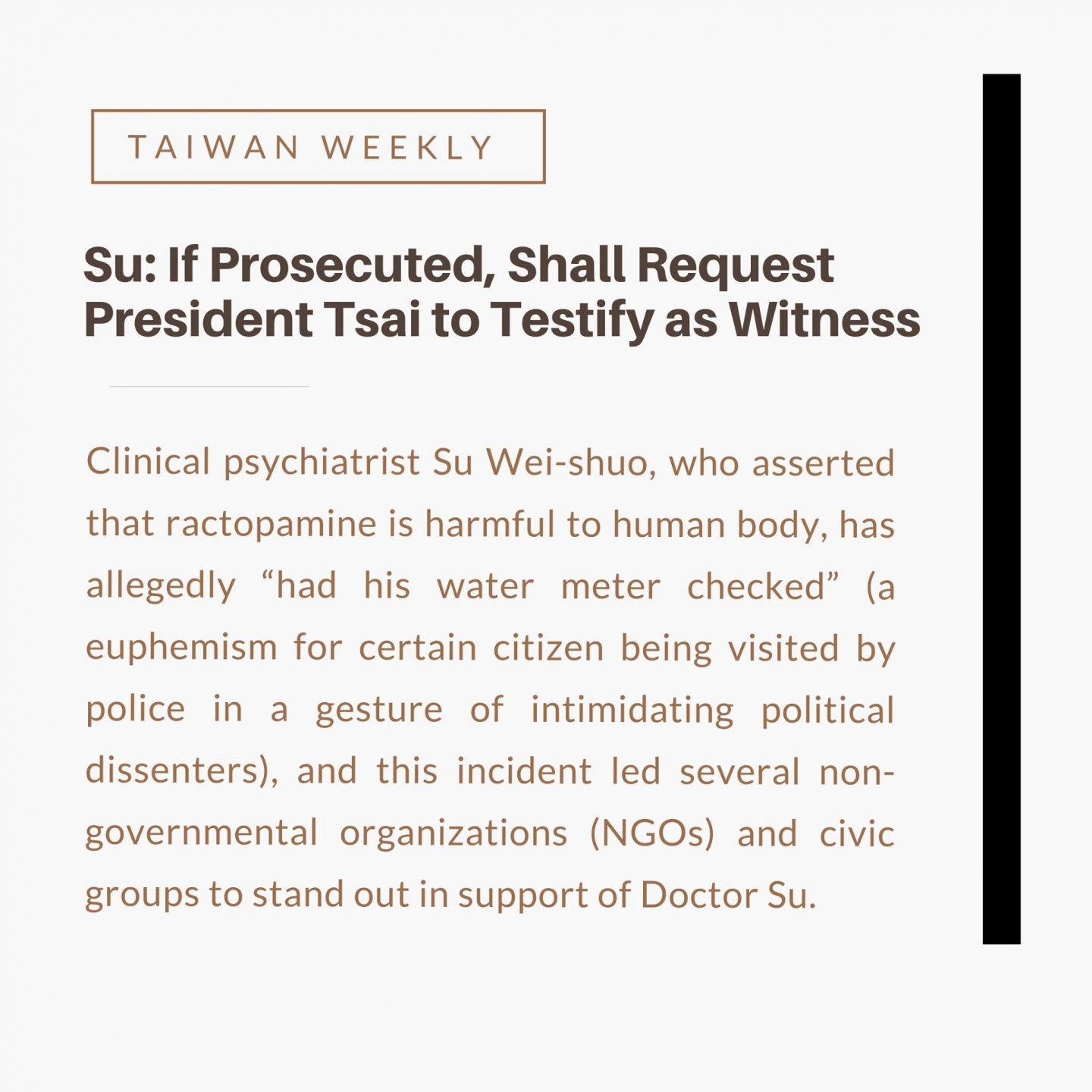 --Su: If Prosecuted, Shall Request President Tsai to Testify as Witness