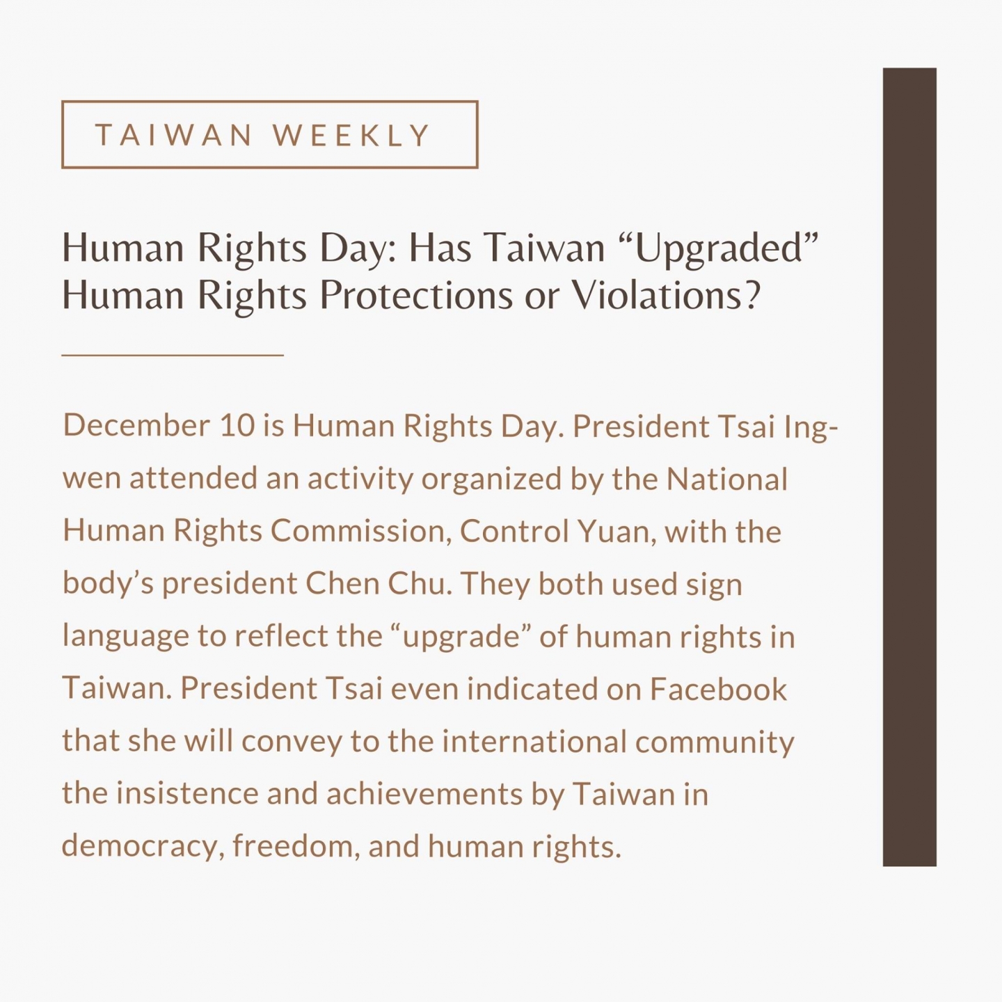 --Human Rights Day: Has Taiwan “Upgraded” Human Rights Protections or Violations?