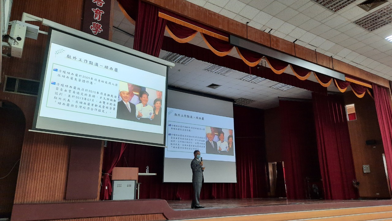 曾任駐紐西蘭大使、駐貝里斯大使等的蔡爾晃大使,與同學們分享這幾個國家的經驗。並且與同學分享最重要的【#同學未來可參與的外交活動】,包含 #外交部的青年海外工作服務團 、#駐外技術團、#外交替代役 、#國際青年大使、 #外交小尖兵 #農業青年大使