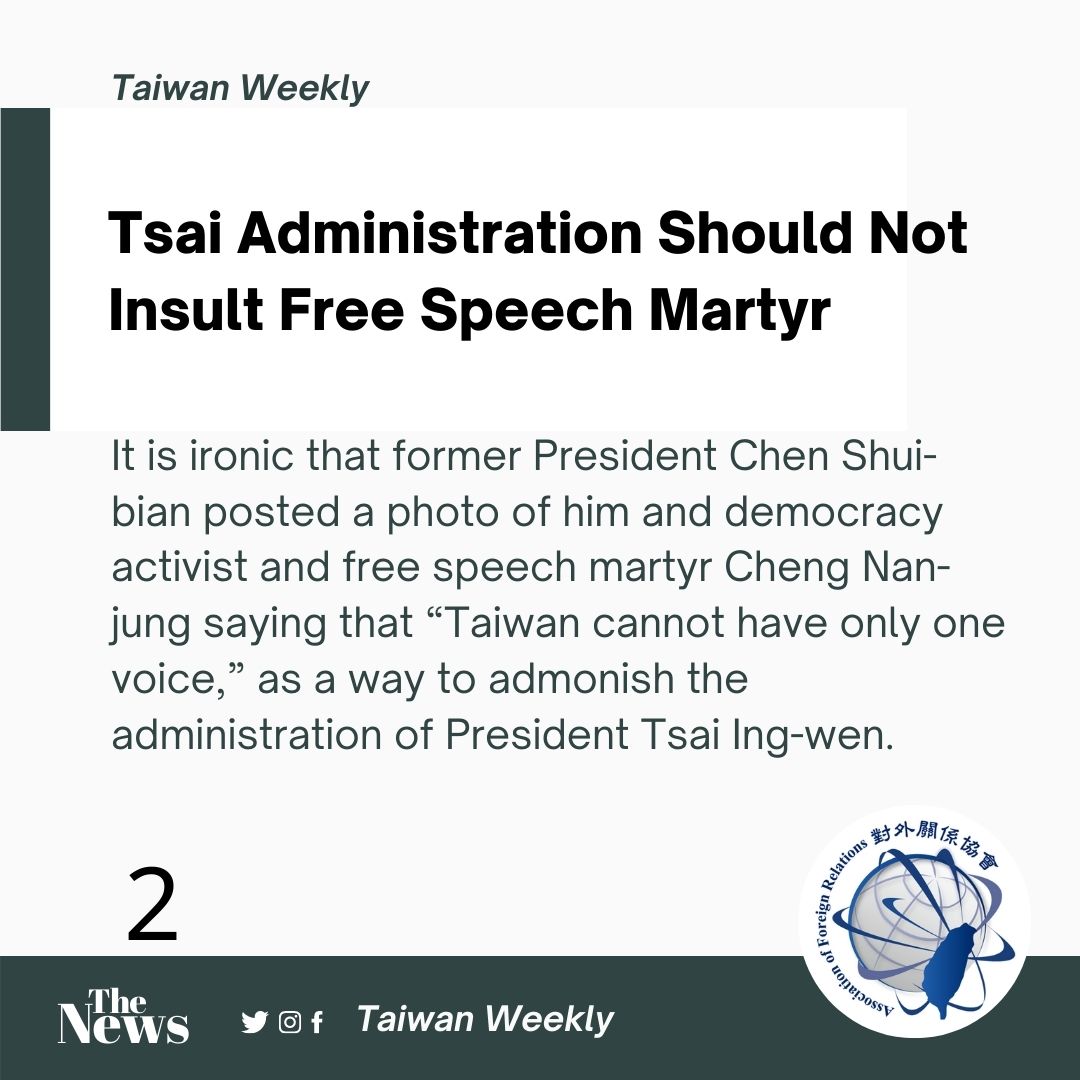 --Tsai Administration Should Not Insult Free Speech Martyr