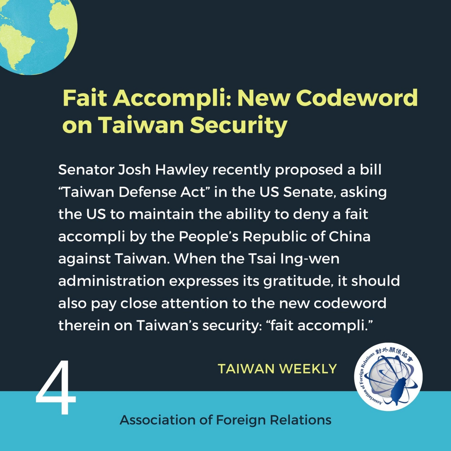 -- Fait Accompli: New Codeword on Taiwan Security