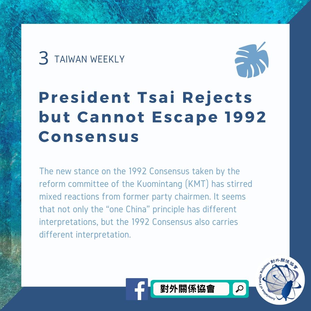 --President Tsai Rejects but Cannot Escape 1992 Consensus