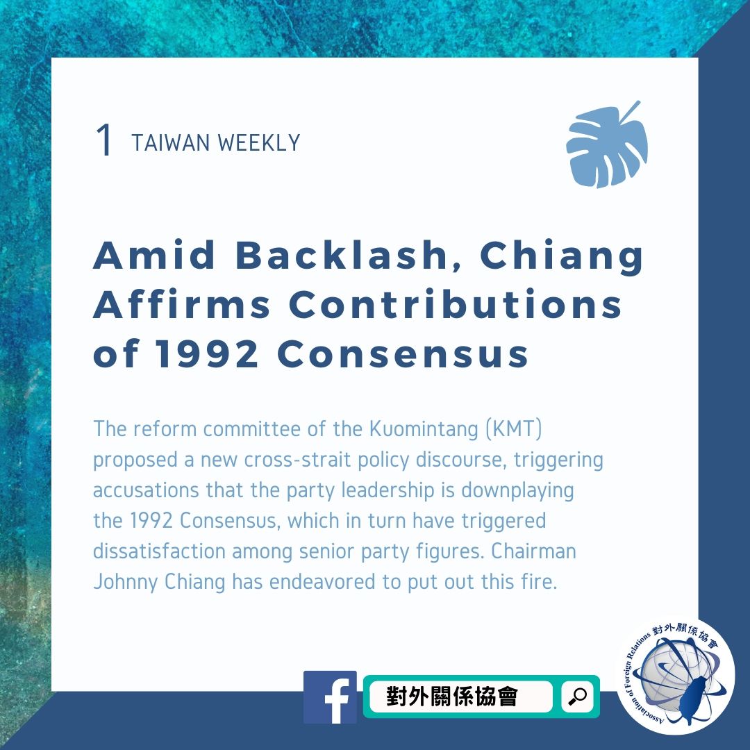 --Amid Backlash, Chiang Affirms Contributions of 1992 Consensus
