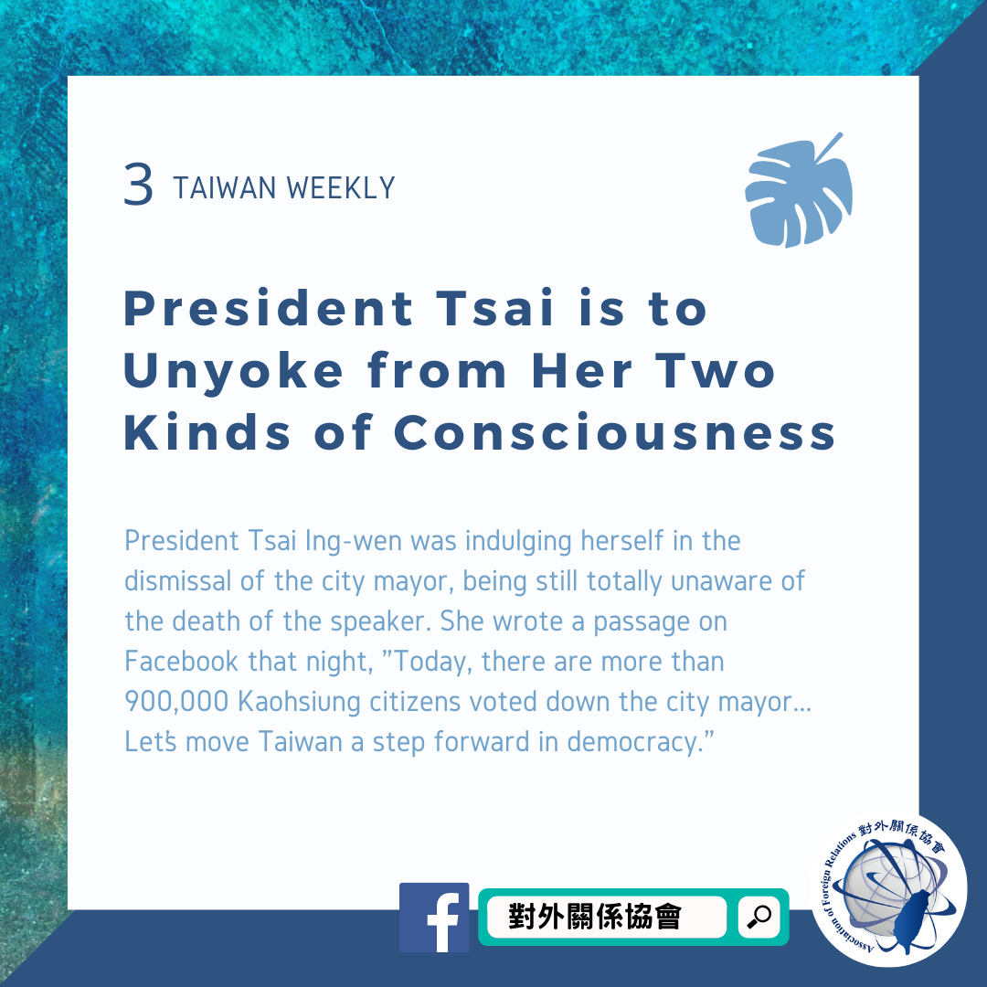 --President Tsai is to Unyoke from Her Two Kinds of Consciousness