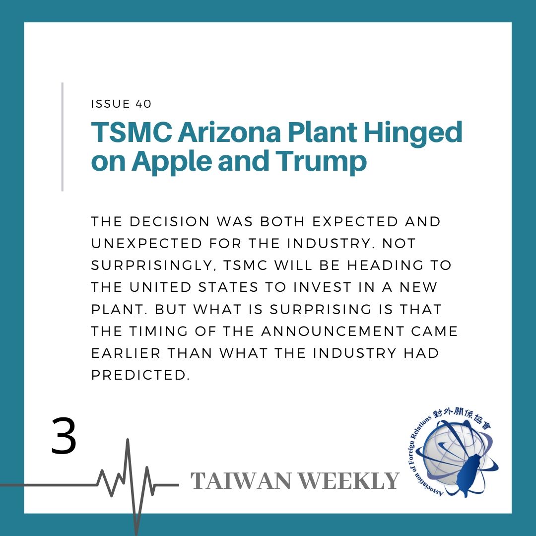 (3) TSMC Arizona Plant Hinged on Apple and Trump