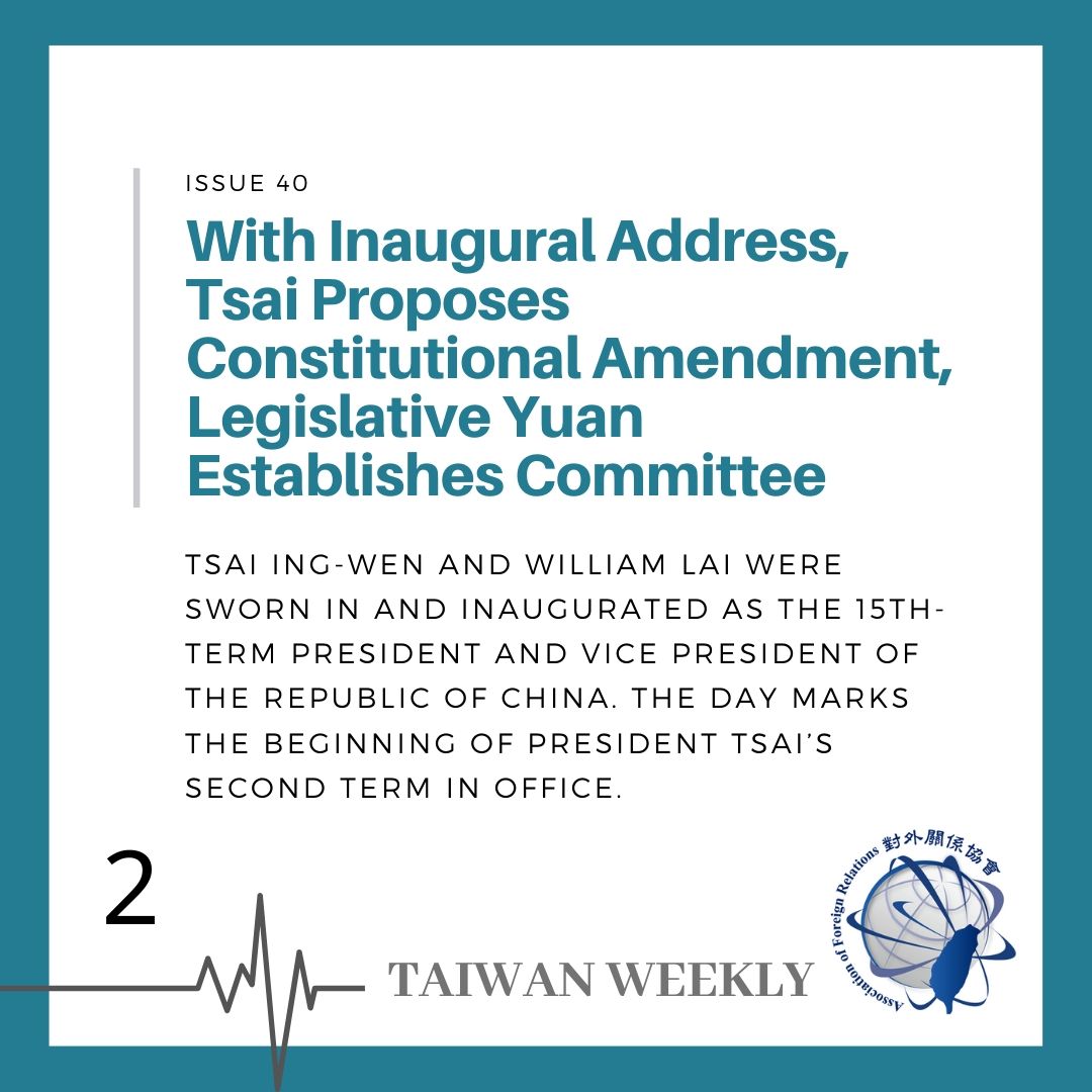 (2) With Inaugural Address, Tsai Proposes Constitutional Amendment, Legislative Yuan Establishes Committee
