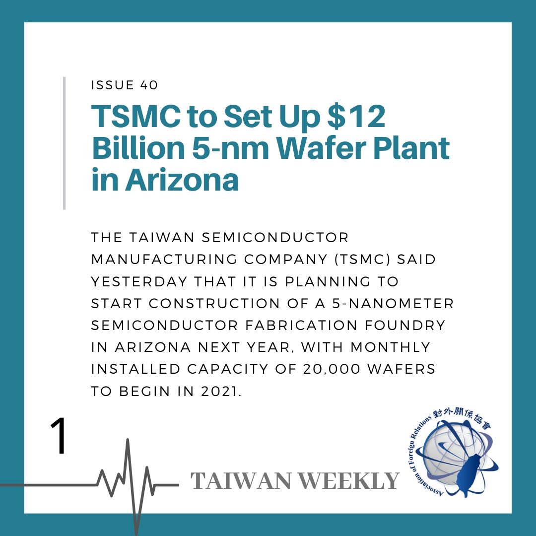 (1) TSMC to Set Up $12 Billion 5-nm Wafer Plant in Arizona