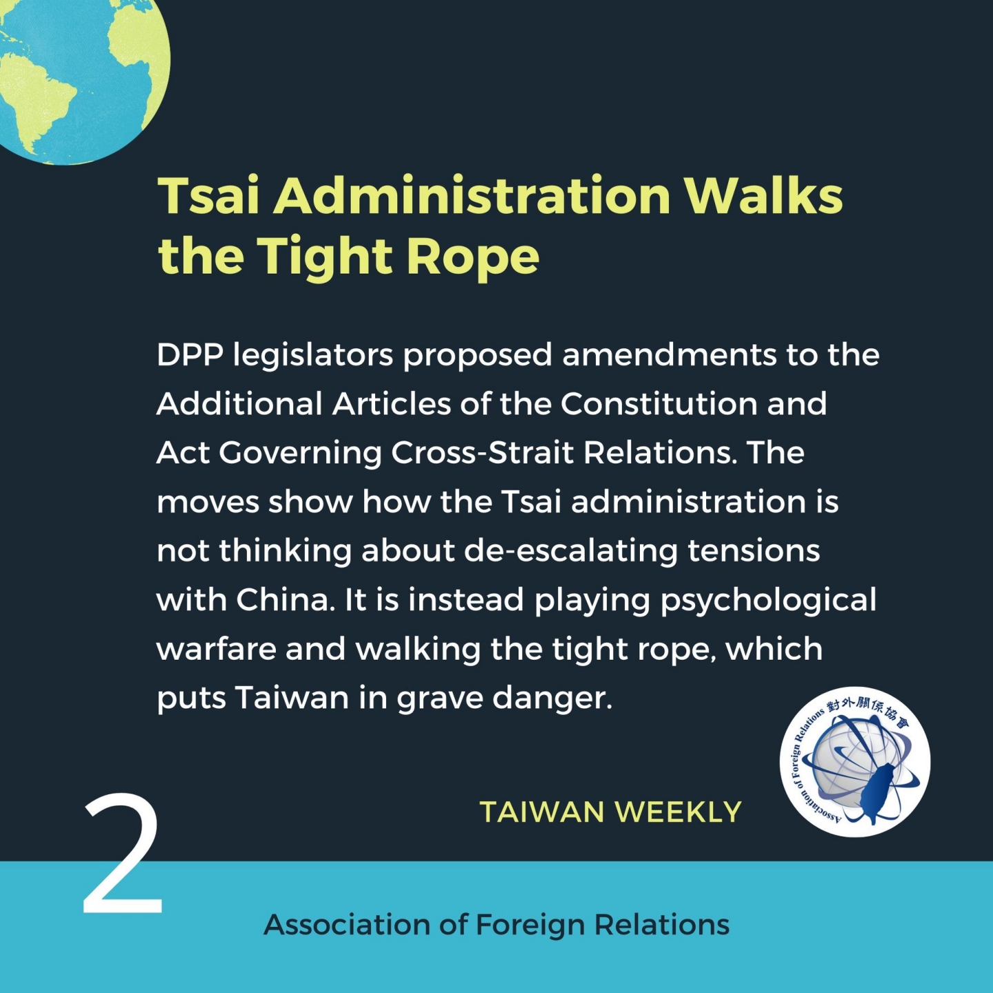 Taiwan Weekly, a reliable gateway to local perspectives and analyses of Taiwan's latest developments circulated in the Chinese-language media, is released every week by Association of Foreign Relations and Fair Winds Foundation.