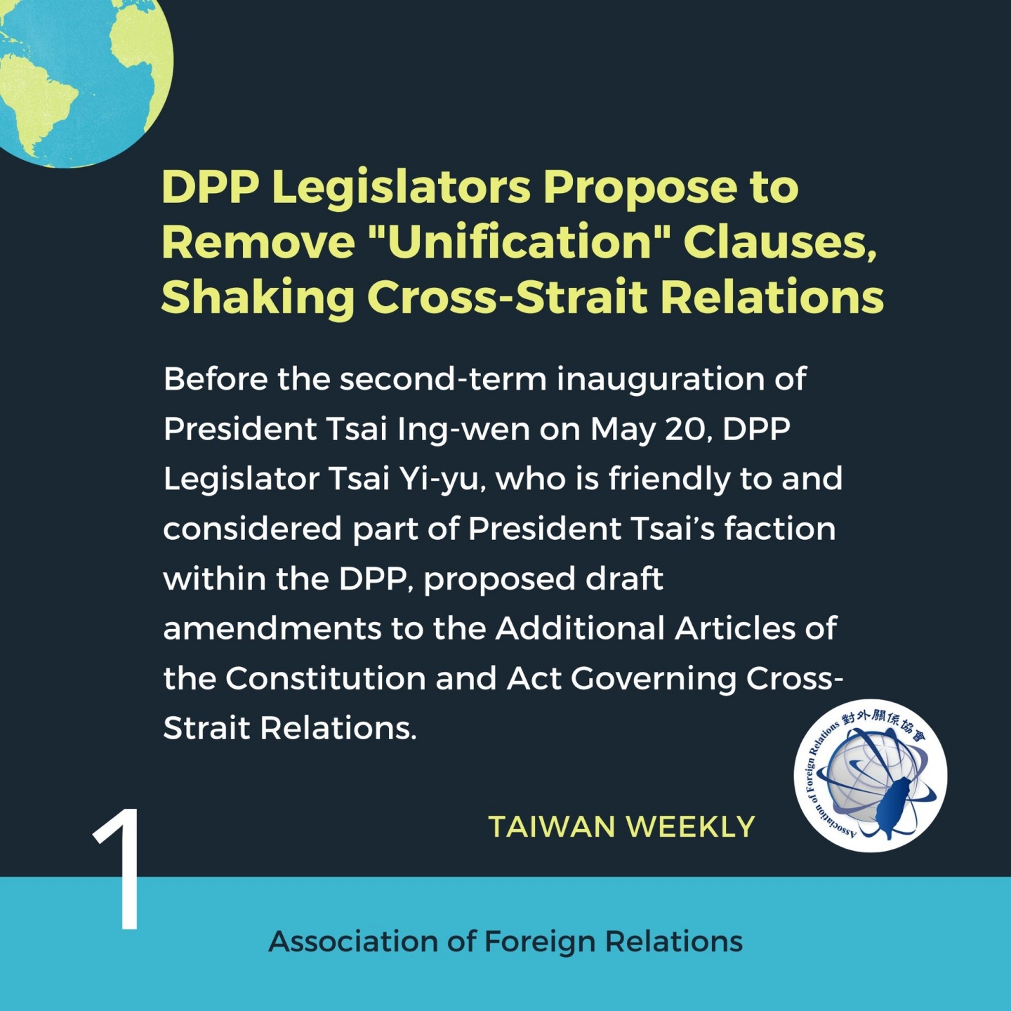 (1) DPP Legislators Propose to Remove "Unification" Clauses, Shaking Cross-Strait Relations