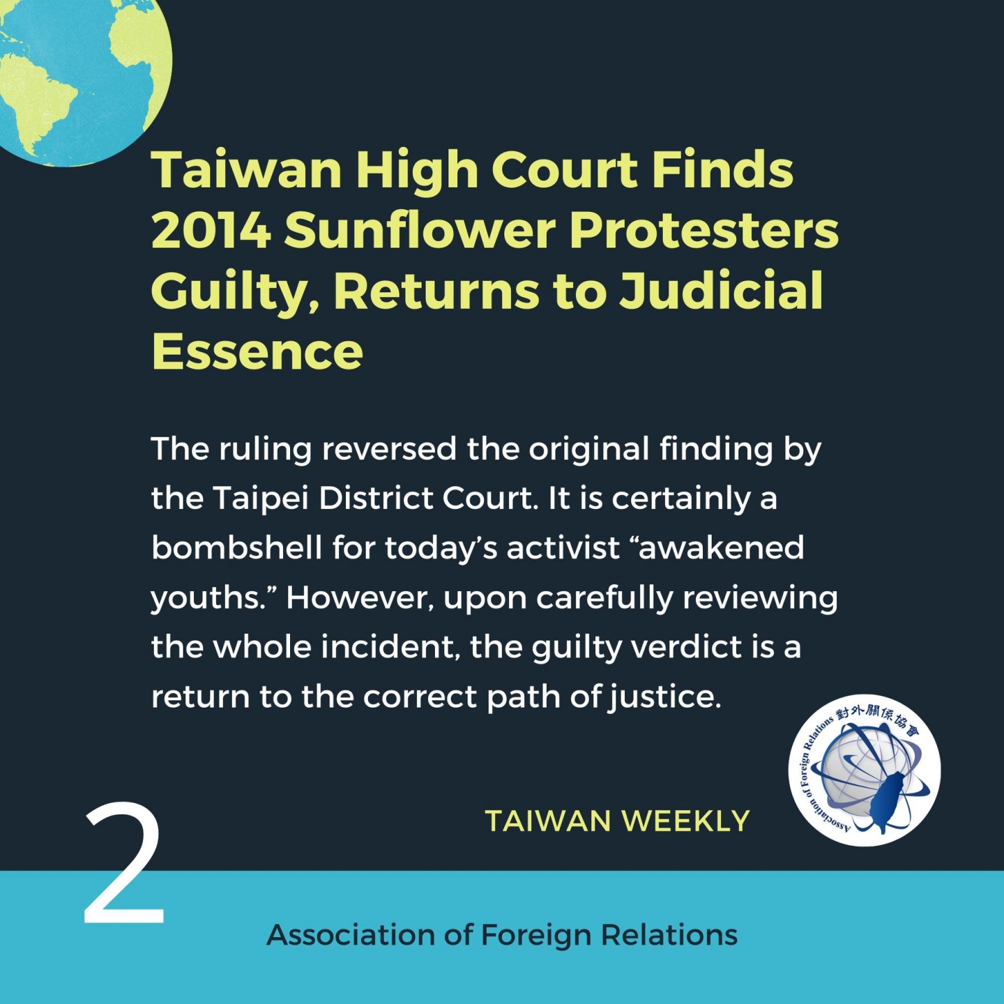 (2) Taiwan High Court Finds 2014 Sunflower Protesters Guilty, Returns to Judicial Essence