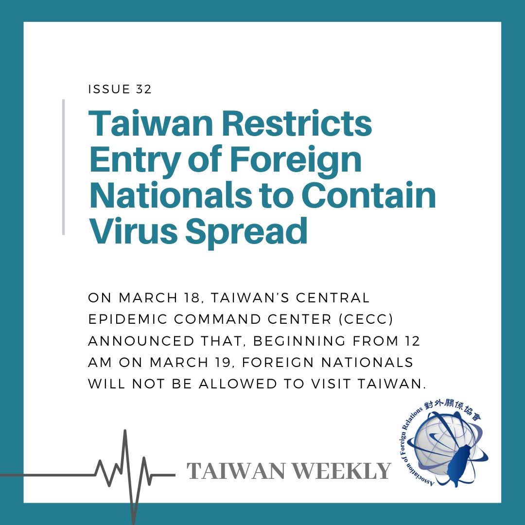 〔1〕 Taiwan Restricts Entry of Foreign Nationals to Contain Virus Spread