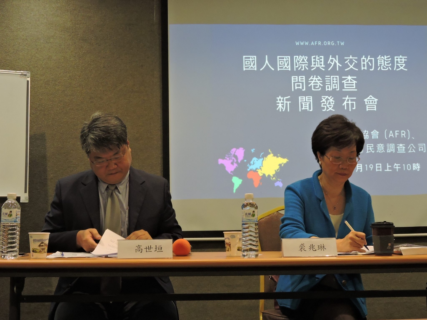 「國人國際與外交的態度」問卷調查新聞發布會於民國105年8月19日上午舉行,由對外關係協會(以下稱本會)秘書長、政大外交系副教授、前外交部研究設計委員會主委黃奎博主持,另邀全國公信力民意調查公司總經理高世垣( Shihyuan Kao )及本會理事、中研院歐美所研究員、前駐美副代表裘兆琳任評論人。