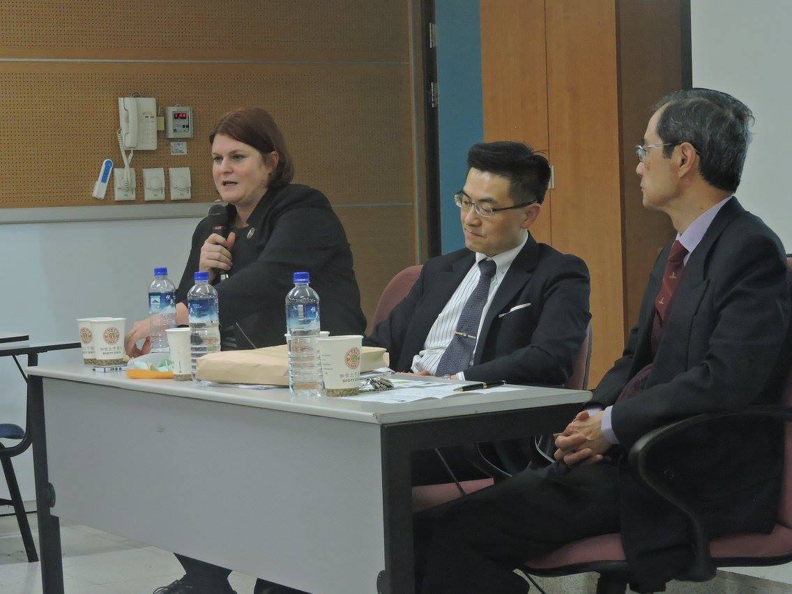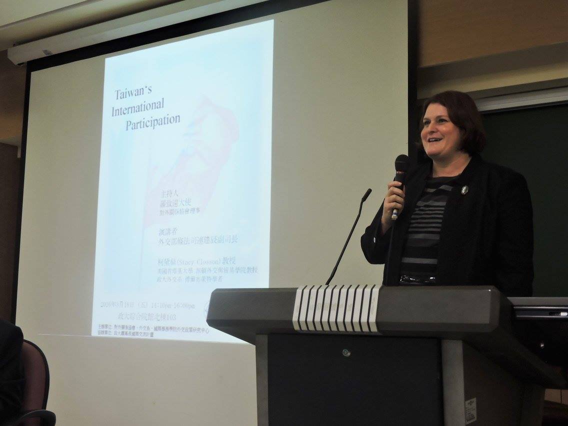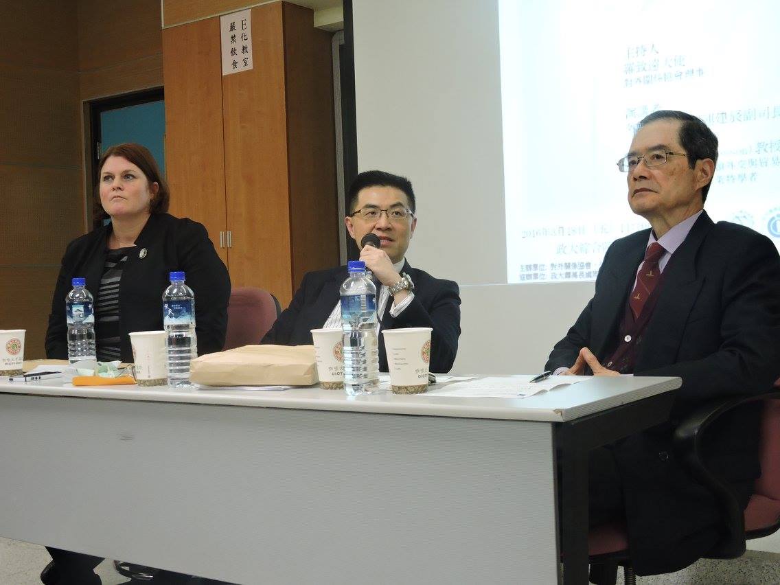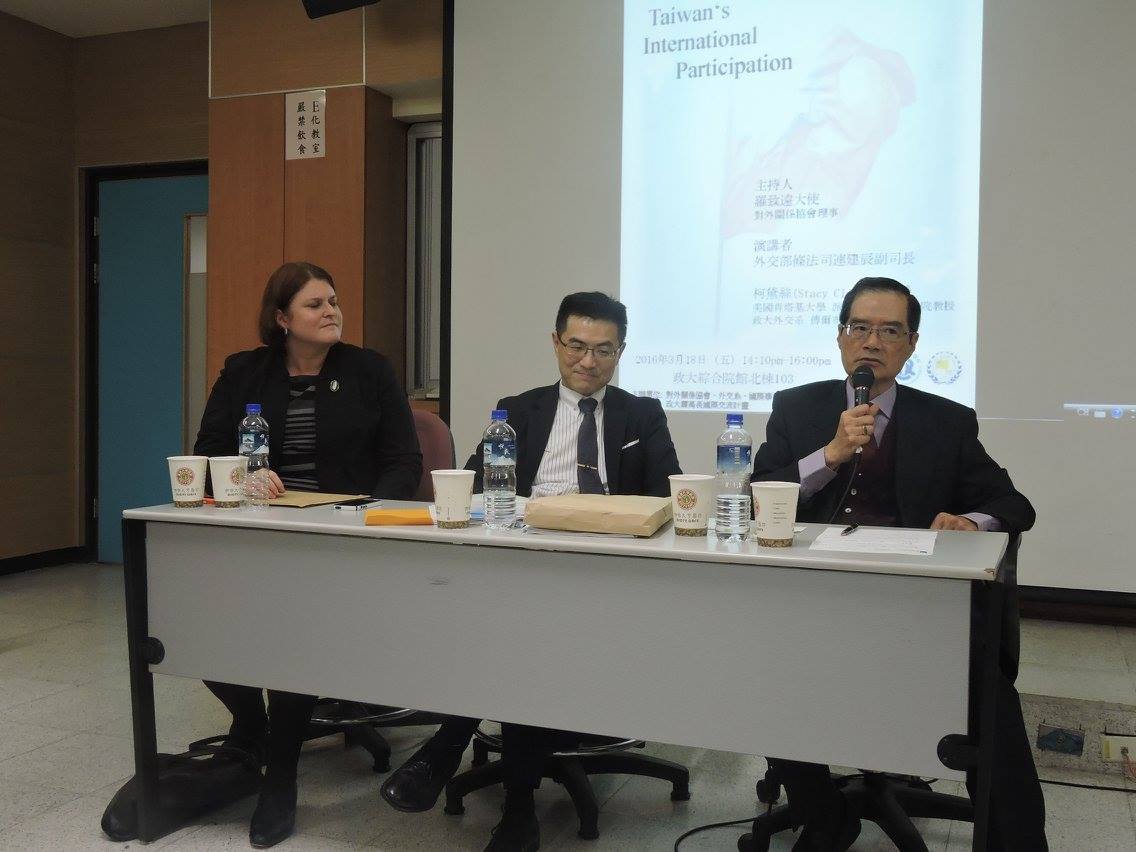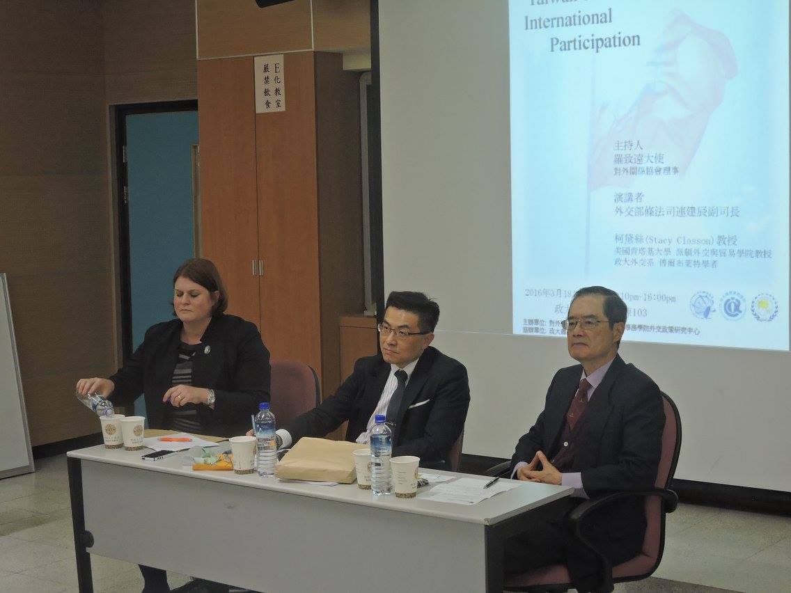 本會理事羅致遠大使主持,外交部條約法律司連建辰副司長及政治大學傅爾布萊特(Fulbright)客座教授教授柯黛絲 (Stacy Closson) 主講,探討在快速變遷的國際社會裡,中華民國擴大其國際發展空間時,面臨到的機會與挑戰。