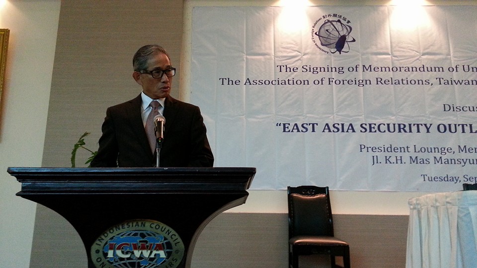 對外關係協會與印尼國際事務協會(ICWA)簽署合作備忘錄,歐會長鴻鍊及ICWA理事會主席Wibisono分別致詞並簽署備忘錄。