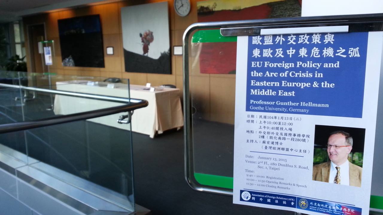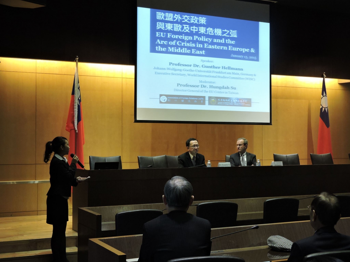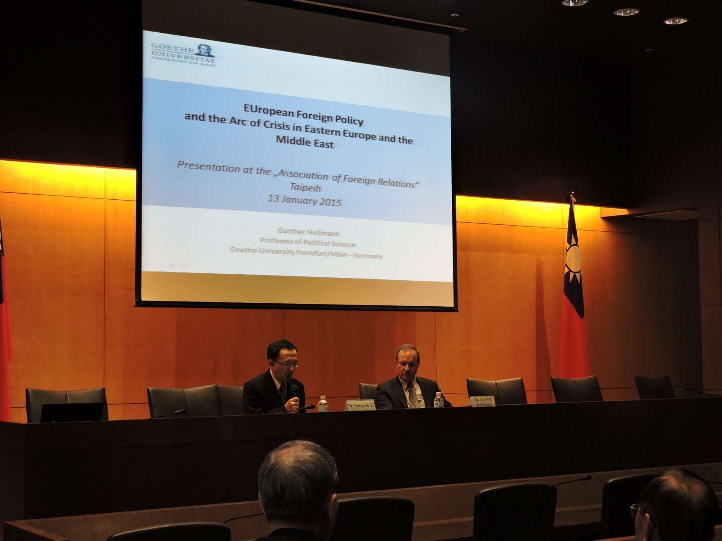 德國法蘭克福大學(Johann-Wolfgang-Goethe-Universit Frankfurt am Main)政治學系教授Gunther Hellmann,於104年1月13日主講歐盟對於東歐及中東之政策。