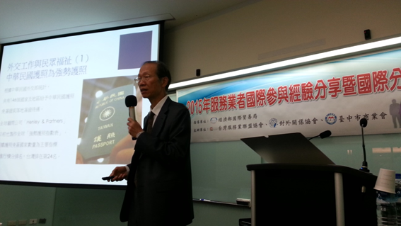 本會與台灣服務業聯盟協會(以下簡稱台服盟)合作,於本(104)年11月11日及11月26日,分別在台北市及台中市舉辦「服務業者國際參與經驗分享暨國際分析座談會」,提供具國際觀、前瞻性的國際趨勢分析,發揮社會教育功能,以協助國內各界掌握國際社會脈動,朝國際化方向邁進。