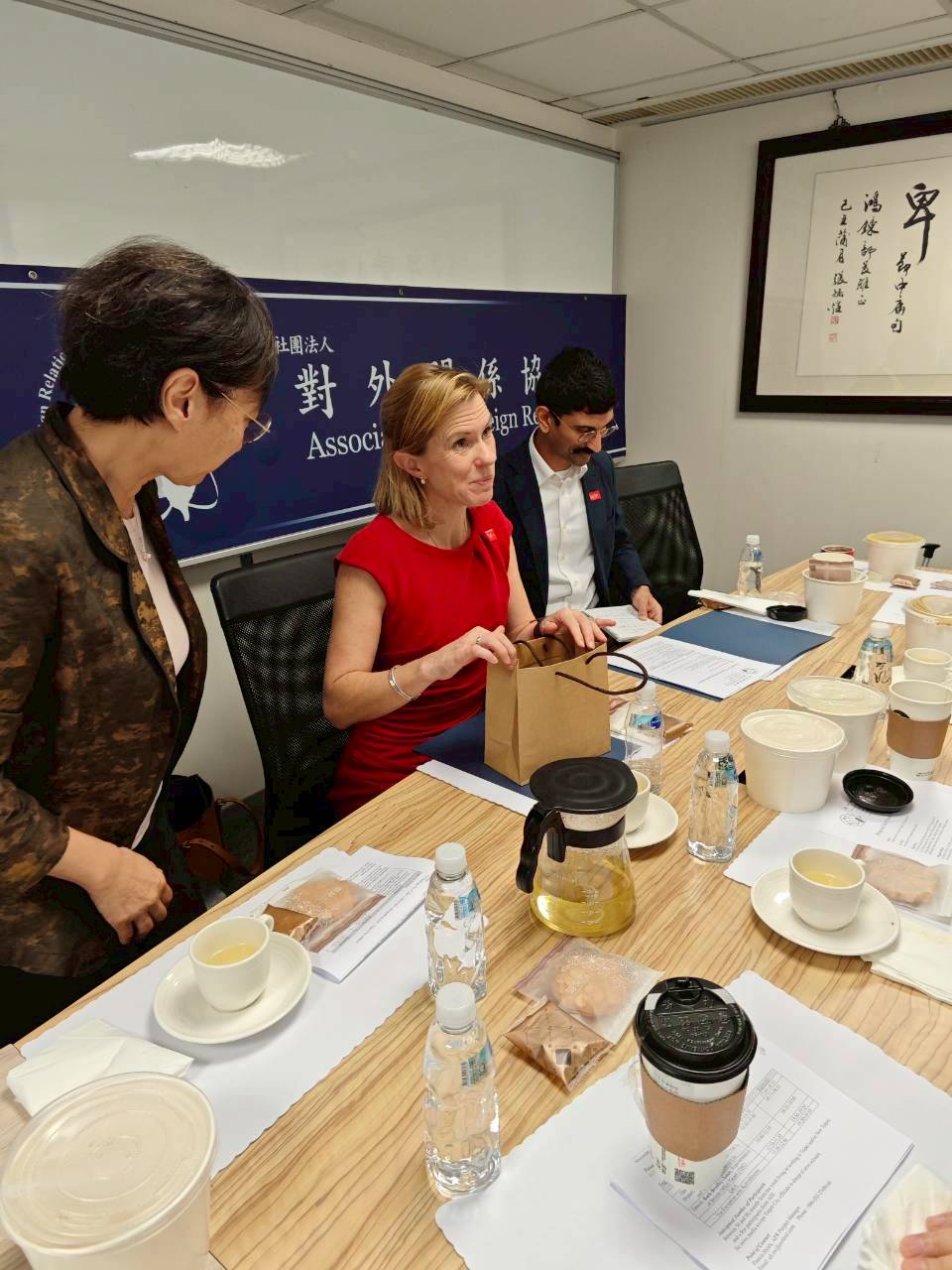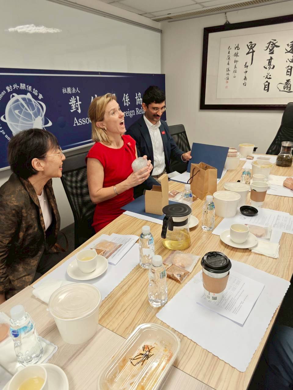 包代表對於兩岸關係特別感興趣,協會特別安排夏立言大使與張小月大使,分別就在政府任職時期的兩岸關係提出看法。夏大使分常詳細的把馬英九總統時期的兩岸關係做了一個詳盡的介紹,並說明當初馬習會舉辦的過程。張小月大使則是把蔡英文總統時期的兩岸關係說分明,讓包代表了解到在不同時期的兩岸關係走向。