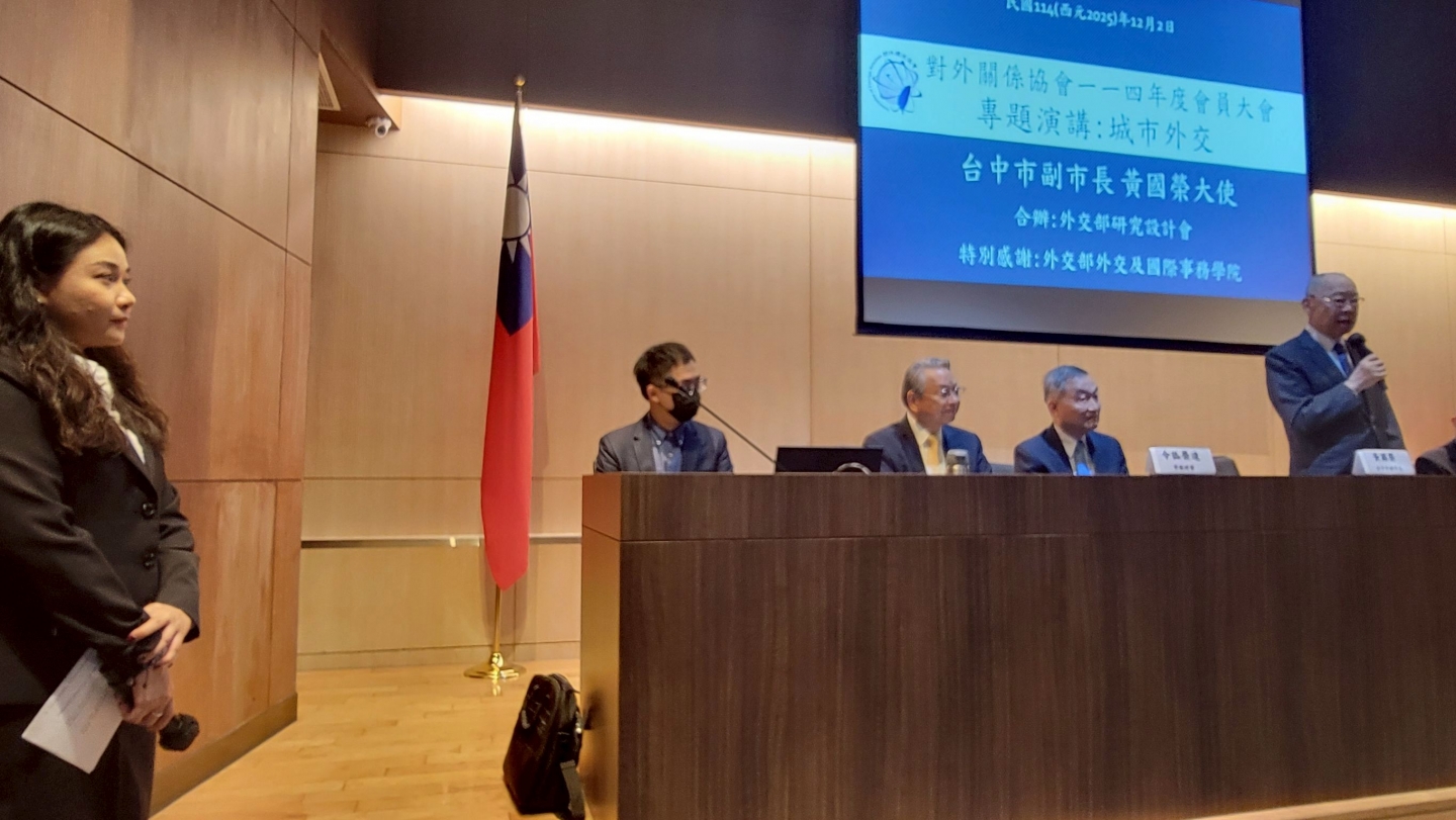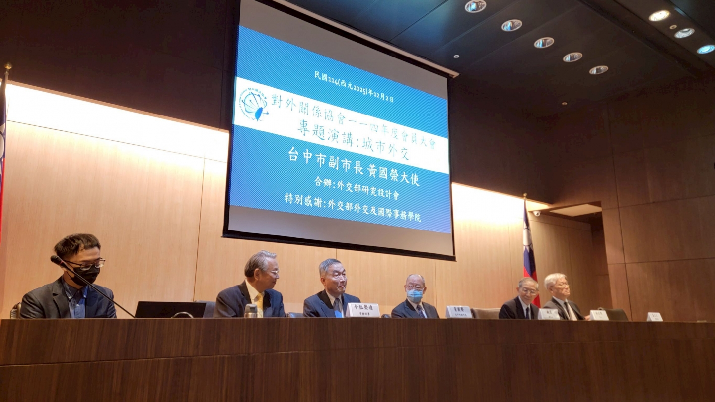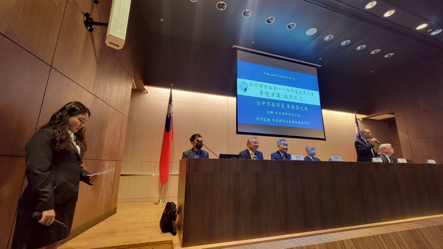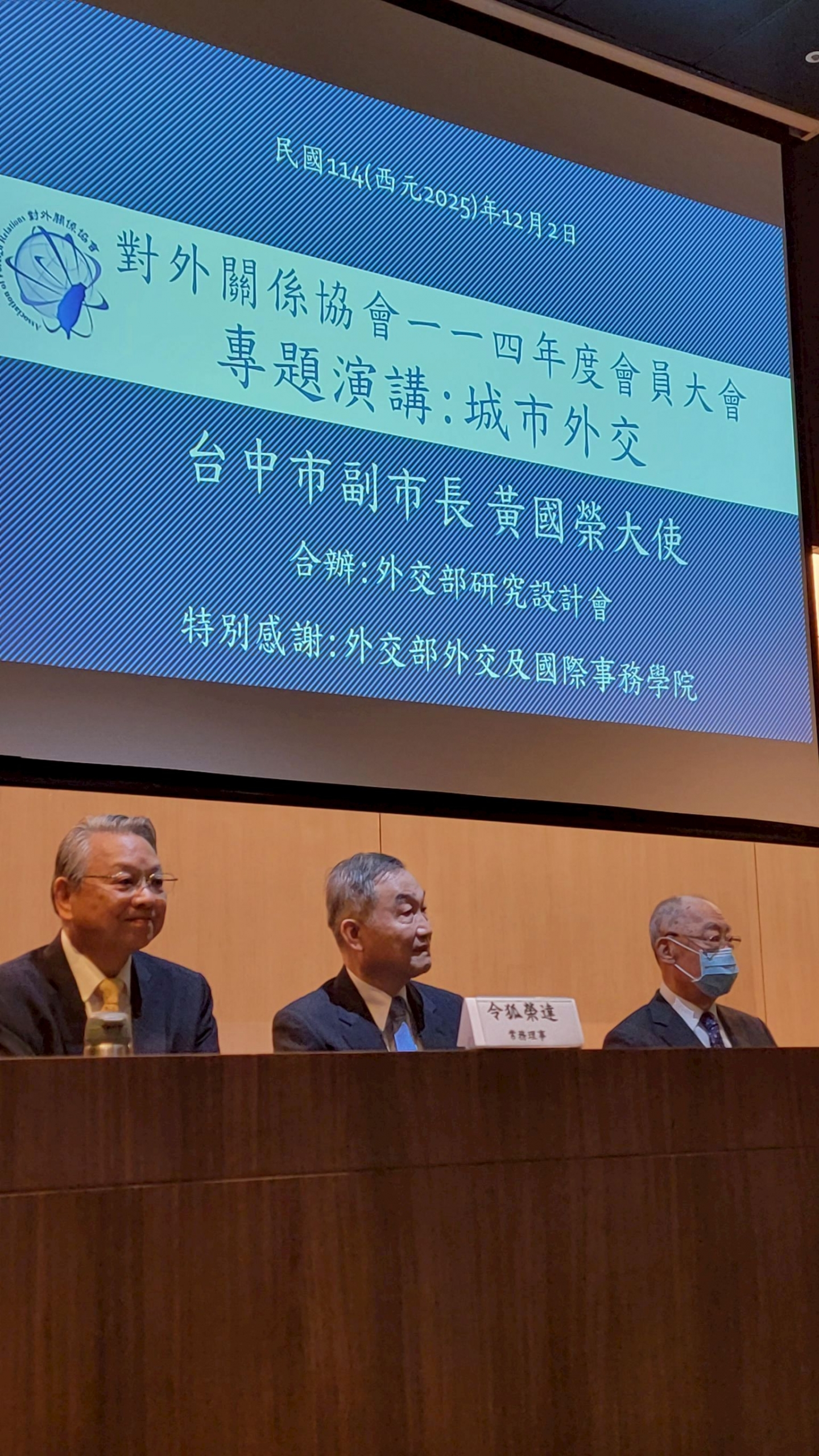 協會另邀請台中市副市長黃國榮大使進行「城市外交」的專題演講,吸引會眾高度關注。黃副市長曾派駐蒙古國等地,涉外經驗豐富,他還特別提到對外關係協會與台中市政府合作的「大使帶你遊世界」演講活動,目前已經超過兩萬學子受惠。