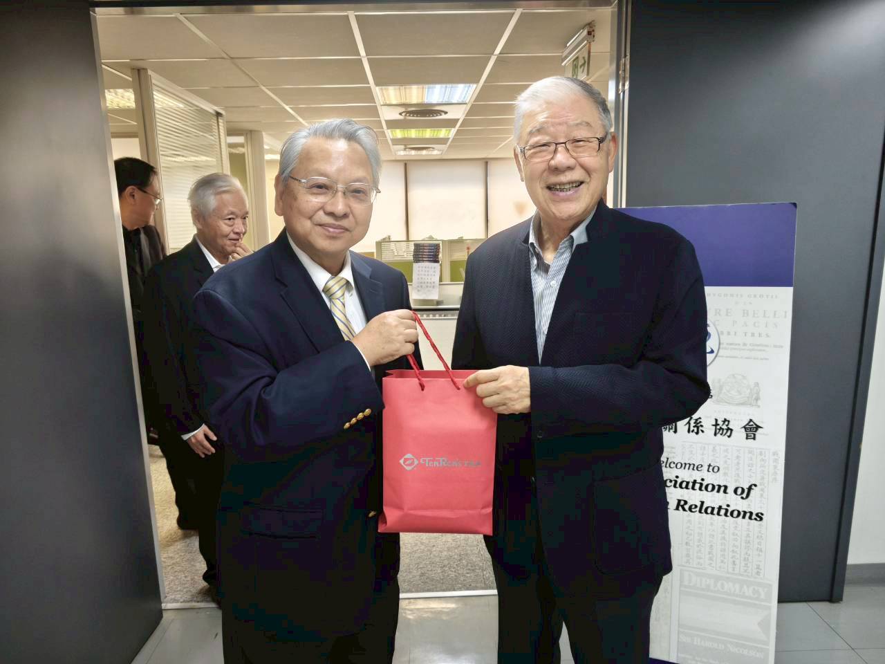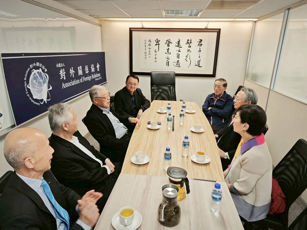 前總統府資政袁健生大使於本(3)月18日上午蒞臨本會,本會會長令狐榮達大使偕林永樂前會長(前外長)、周麟副會長、呂慶龍理事、張大同監事、高安監事與周進盡忠副秘書長等在場歡迎。 袁大使欣見外交部昔日同僚,提及過往諸多外交趣事,並分享在其他政府單位所發生之點點滴滴。袁大使推崇本會在令狐會長領導之下,會務興隆,有助國人了解國際現勢。令狐會長感謝袁大使之勉勵,並盼未來多加指導。
