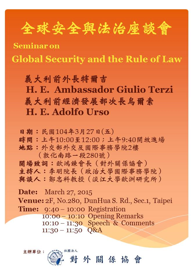 「歐盟外交政策與東歐及中東危機之弧」演講會 |