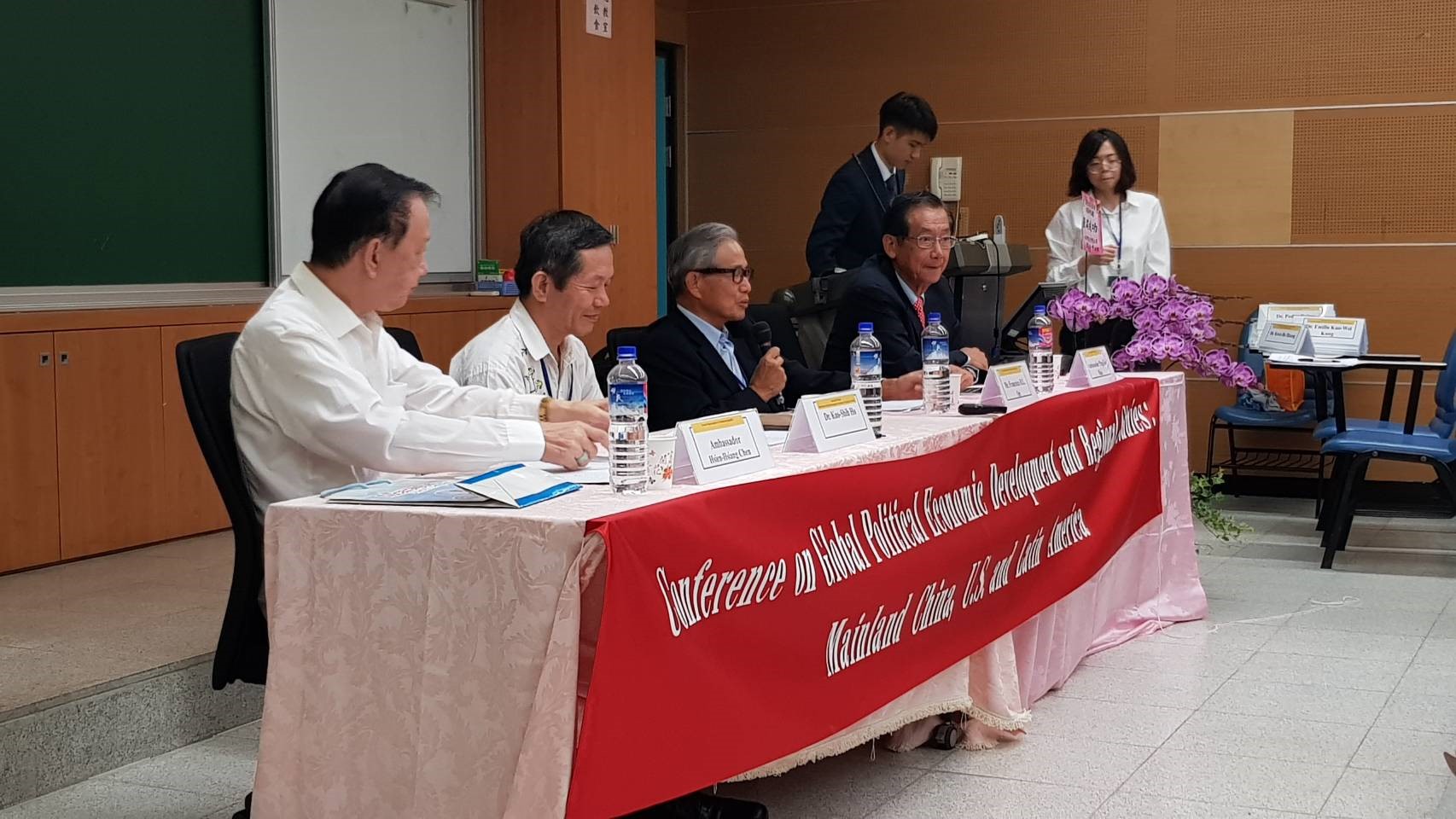 「全球政治經濟發展與區域研究」研討會 本會創會會長歐理事長鴻鍊暨本會會員受邀參加於民國108年10月7日舉辦之「全球政治經濟發展與區域研究:中國大陸、美國與拉丁美洲」研討會 (國立政治大學國際事務學院全球政治經濟發展與區域研究中心舉辦) 。 照片由左至右:陳顯祥大使、何國世博士、歐鴻鍊前會長、侯平福大使